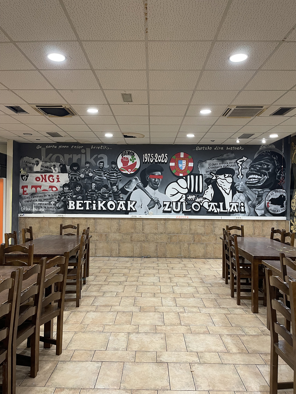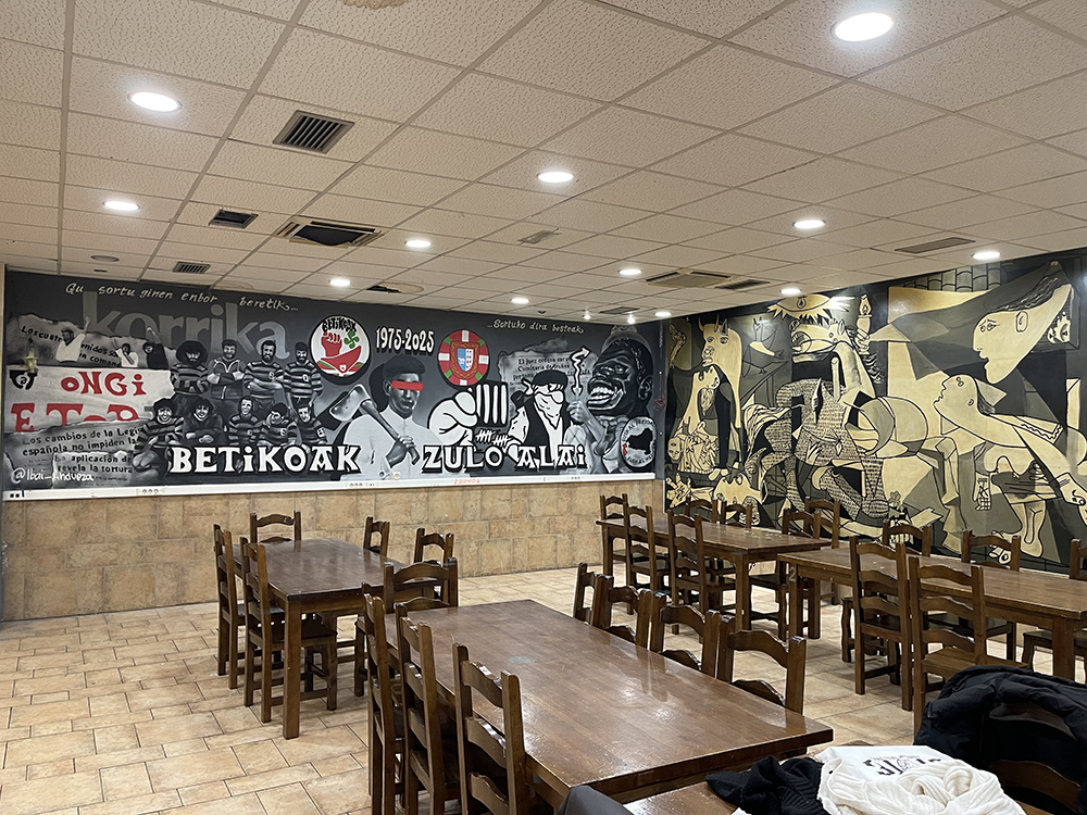 He tenido el placer de colaborar con lugares como Zulo Alai Elkartea en Berriozar, Bestetxea y Unión Elkartea, entre otros, adaptando cada obra a la esencia del espacio y de las personas que lo disfrutan. Mi objetivo es crear piezas que no solo decoren, sino que conecten y reflejen la identidad de cada comunidad.
